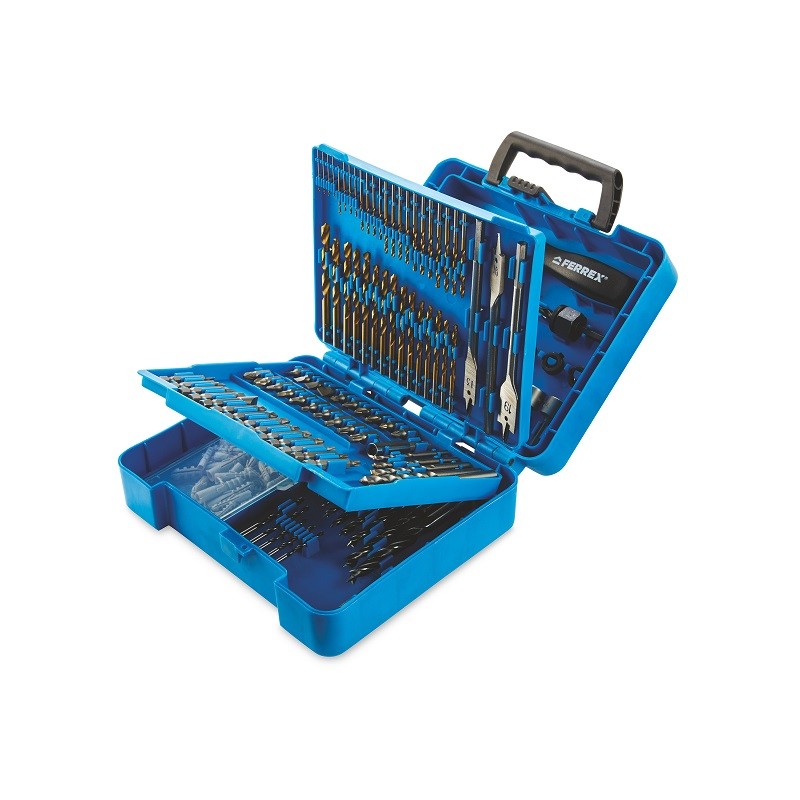 £19.99Ensure you have everything you need when tackling those odd DIY jobs in and around your home. The Ferrex 204 Piece Drill Bit Set includes drills, bits, adapter, ratcheting screwdriver handle and more. -
