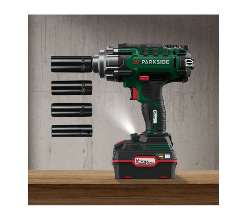 Powerful impact wrench with high torque (max. 400Nm) for vehicle wheel assembly
