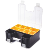 Featuring a sturdy handle for easy transport, these two-sided boxes have compartments and dividers on one side, and eight removable insert bins on the other.