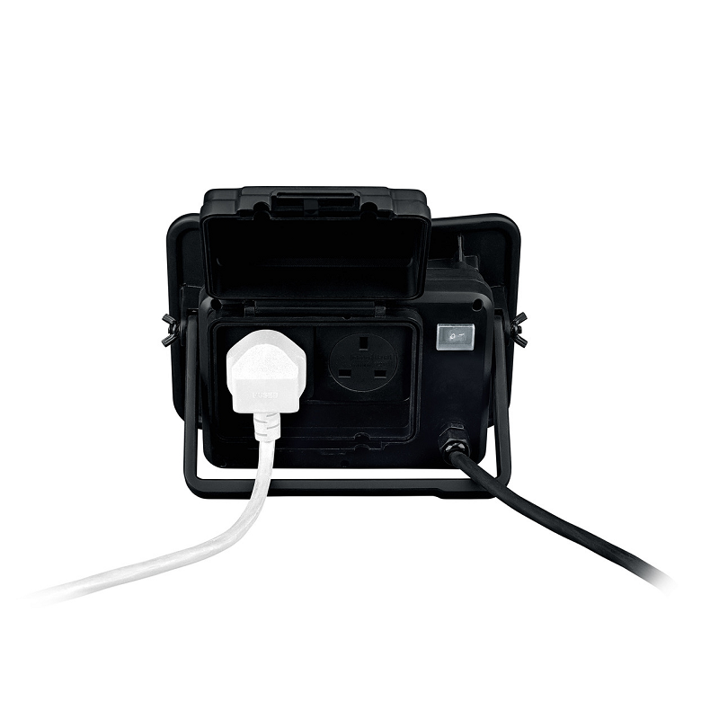 Two flip-top splash proof power sockets for external devices (IPX4)