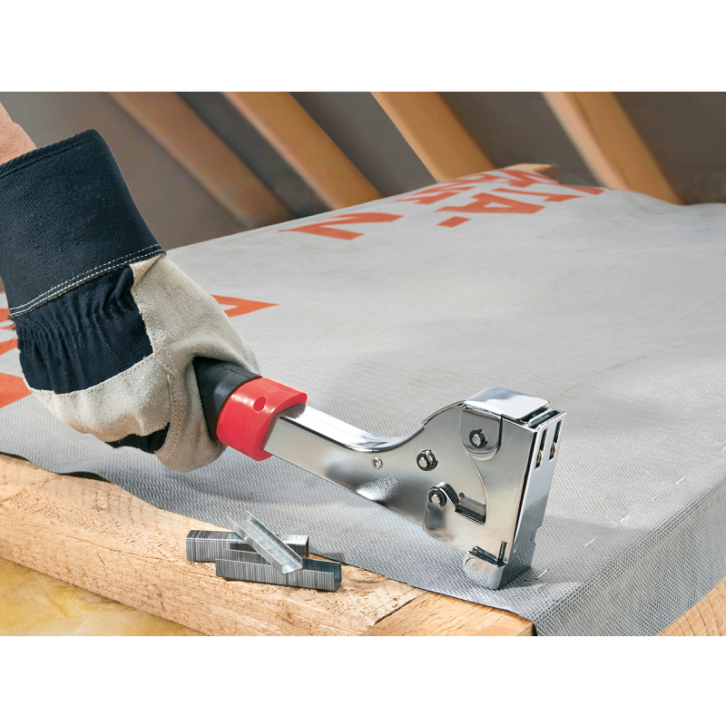 For stapling insulation materials, films, fabrics, flooring, roofing felt etc, easily as well as for D.I.Y woodwork.